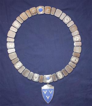 Ordførerkjedet Ordførerkjedet ble ferdigstilt høsten 1999. Odd P. Olsen har laget kjedet som er i sølv og emalje.